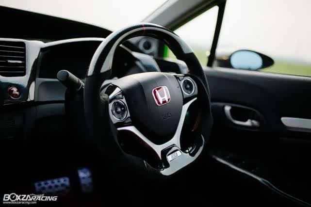 图:方向盘是来自思域Si的,科幻感十足,而且采用了碳纤维包裹。