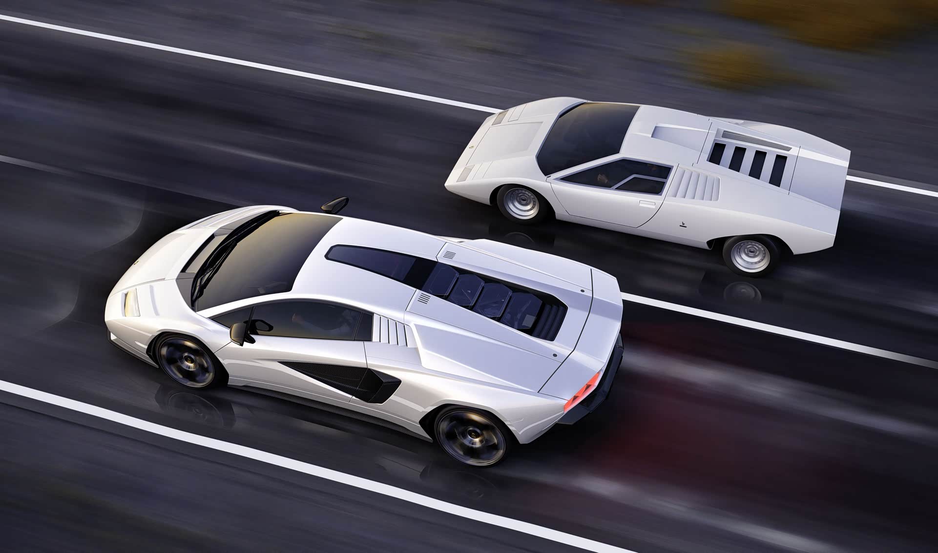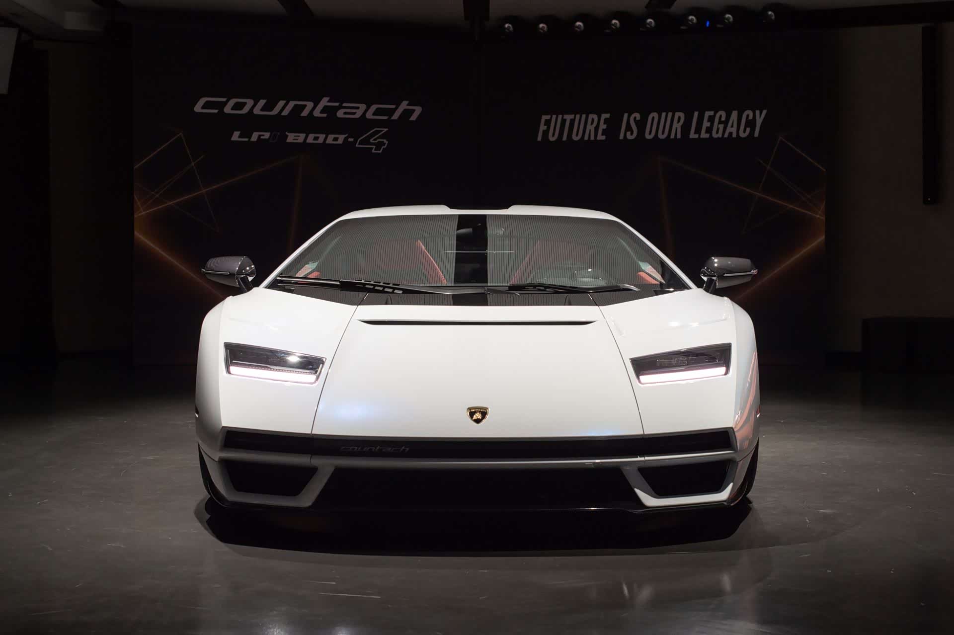 在外观方面,新车其实更像是大牛车型的基础上融合了Countach的经典线条,例如前脸部分扁平的长方形大灯组,贯穿式的前保险杠装饰,以及直来直去的棱角线条。