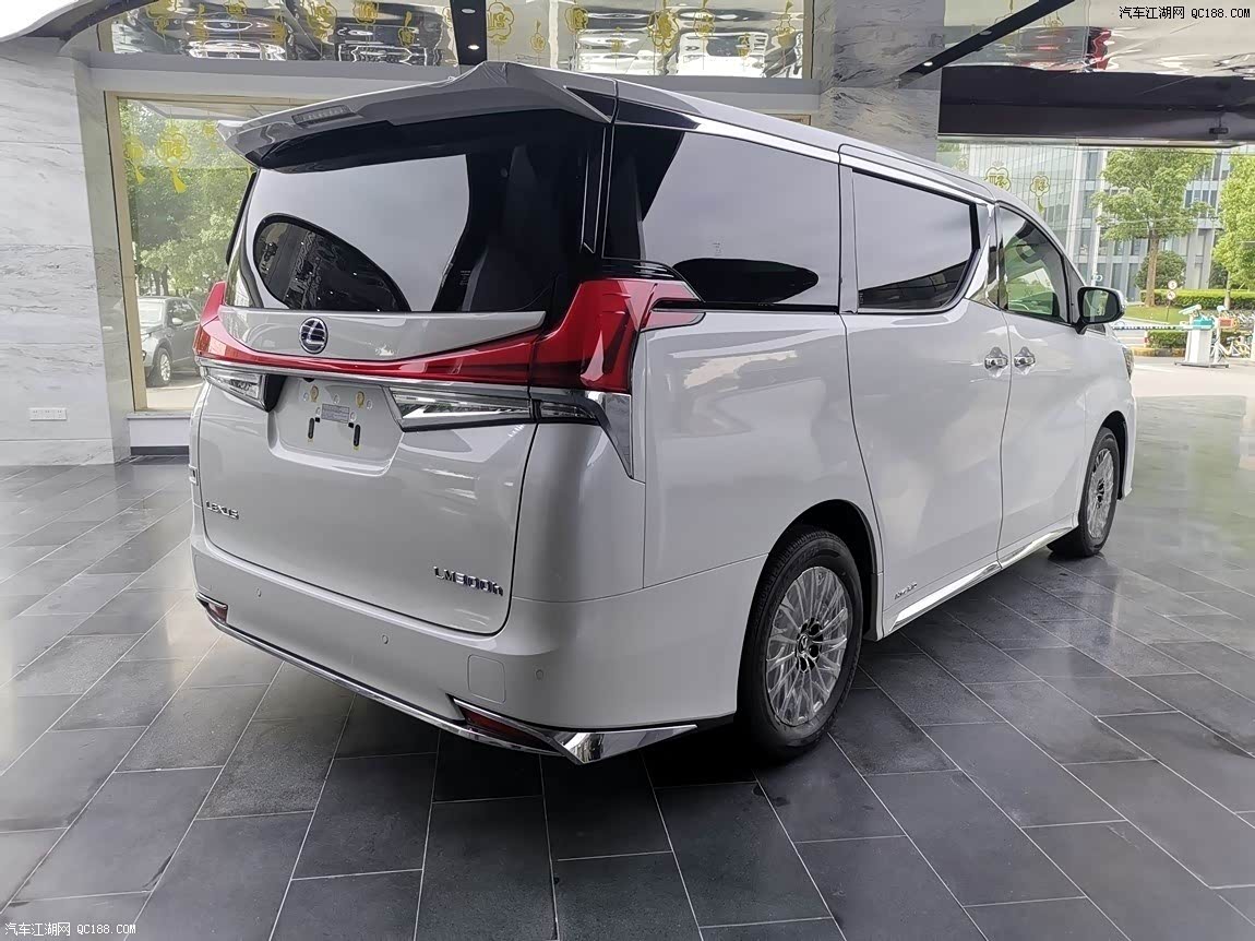 2021款 雷克萨斯LM300h车尾部分,雷克萨斯LM的尾灯设计以大气为主,整体呈现出的X形的贯穿式尾灯,配合尖锐的边缘,看起来颇有前卫气息。