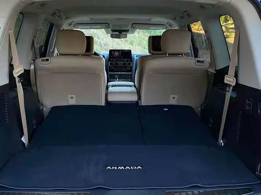 新车尾部加入有一根贯穿式的镀铬饰条,下方镶嵌的是“ARMADA”途乐英文标识,搭配底部向外凸起的包围和防擦条,呈现出比较不错的硬派气息和层次感。