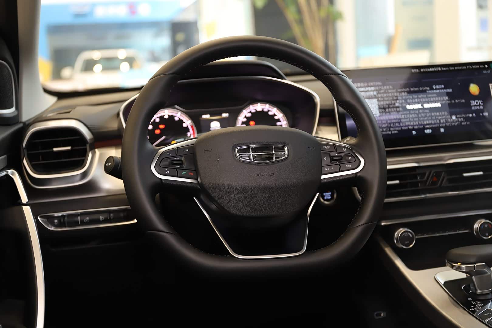 出风口的造型比较别致,有点像战斗机上的风格。而中控大屏来到12.3英寸,内建吉利银河OS系统,支持T-BOX远程控制功能,智能化和便捷度都有保障,放在一台10万元不到的SUV上还是比较有吸引力的。中控下方的按键区域设计得也比较干净利落,空调面板比较实用,同时还有驾驶模式和坡道辅助的按键。安全配置上,新款缤越将配备ICC智能领航系统,支持自动跟车、自动泊车、遥控泊车,更是支持整车的FOTA升级,紧跟时代的潮流。