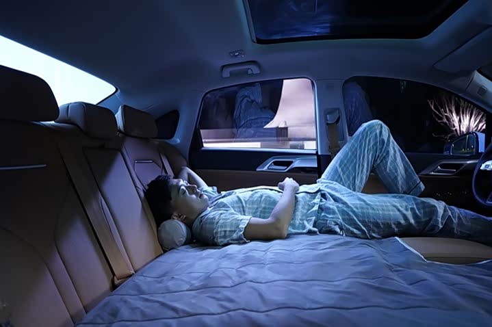既然是一辆定位家用的产品,小鹏P5第二排腿部有效空间达到了991mm,并拥有非常高的空间利用率,车内设置了26处储物空间,后行李箱容积达到450L,官方将其定义为可以陪伴用户日常工作、娱乐的「第三空间」,推出了娱乐场景、睡眠场景、户外场景、生活场景以及DIY场景五大场景模式,用户可根据自身需求选装原厂定制开发的睡眠套装、观影套装、车载美食智能冰箱、守护型智能香氛等,拓展出个性化的生活模式。