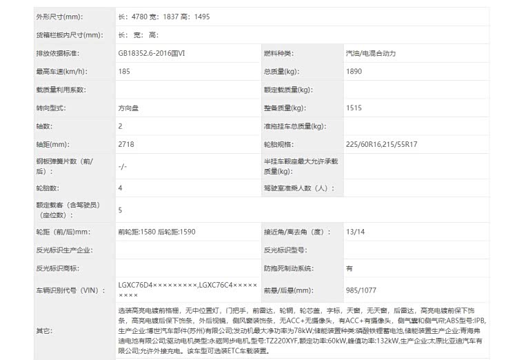 从曝光的申报信息来看,新车的车身尺寸分别为4780/1837/1495mm,轴距为2718mm。除车身长度略超之外(秦PLUS车长为4765mm),其余均和比亚迪现款秦PLUS DM–i车型相同。