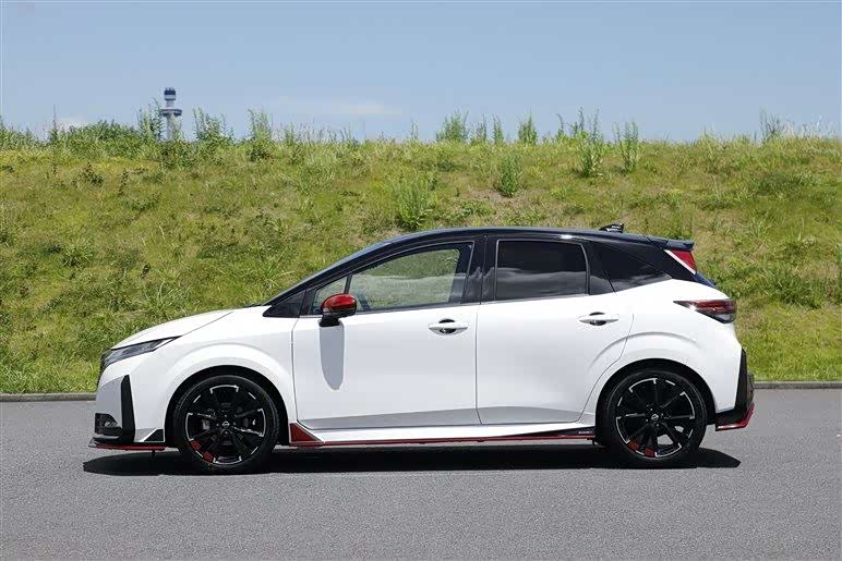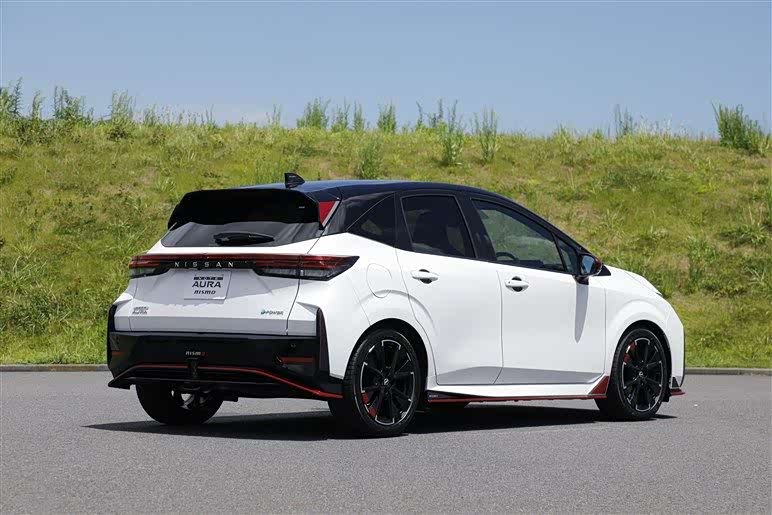 白色的车身,黑色的车顶、轮毂,再加上红色的点缀,这辆NISMO版 日产Note Aura看起来确实很有战斗范儿。