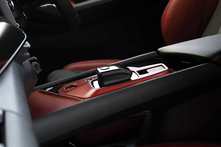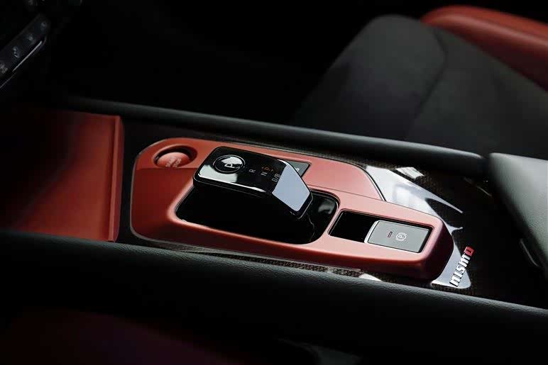 它的电子换挡杆做的很有特色,很有科技玩具的感觉,小巧,驻车档P的按钮在顶部,停车时手指按一下就好。红色、黑色的装饰板很有运动感,NISMO的logo再一次恰到好处的出现在后面。