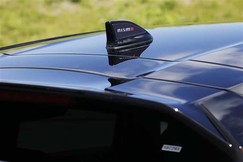 就连车顶装饰性的鲨鱼鳍也都是碳纤维质感,印有NISMO标志的。