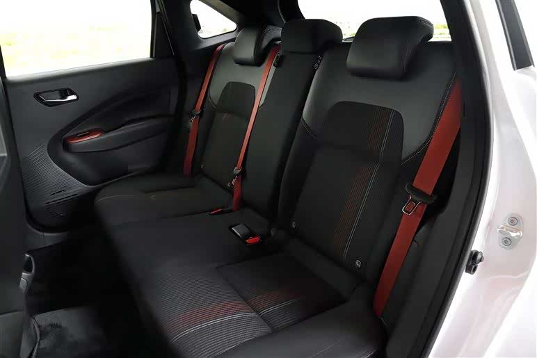 座椅更是把运动风玩得淋漓尽致,它前排是红黑配色、皮革与翻毛皮的材质,赛车座椅样式。后排是皮革和织物混搭的座椅,空间不算大,但是味道绝对足了。