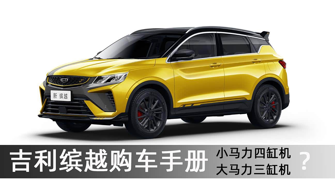 2021年8月14日,吉利正式发布了改款的吉利缤越SUV,新车定位为小型SUV,主打运动操控,官方指导价位7.58-11.98万元。作为一款宣称是“小钢炮”SUV的车型,吉利提供了三种动力总成,包括1.4T四缸+手动挡、1.4T四缸+6DCT、1.5T三缸+7DCT,各有特色,那么到底怎么选?选小马力四缸机,还是大马力三缸机?下面我们来详细分析。