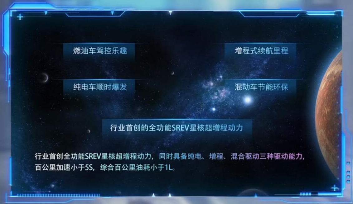 接下来重点介绍的就是星途SREV超增程动力,光看这名头似乎就让人觉得眼前一亮,终于要出新货了。