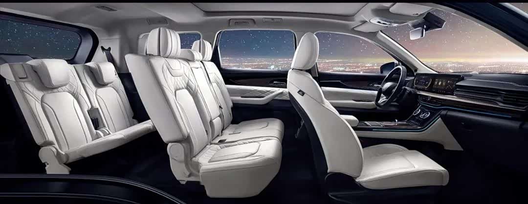 揽月的内饰充满豪华感和科技感。两块12.3英寸的全液晶仪表+中控屏构成了时下流行的联屏设计,搭载Lion 4.0雄狮智云系统,支持苹果CarPlay。此外,电子档把、触控操作的空调系统等元素的加入都大大增添了车内的科技气氛。