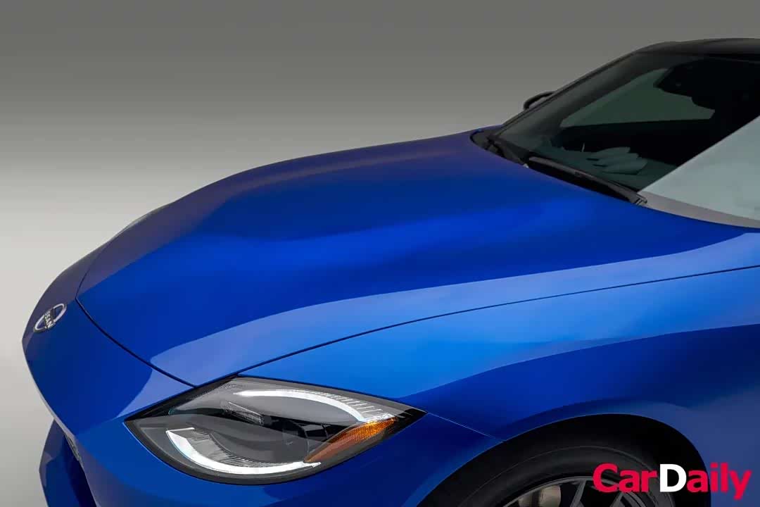 气场十足的前脸保留了概念车上的双半弧形LED大灯以及造型独特的外后视镜,而足以成为标志性元素的长车头可以追溯到40年前专供日本市场的240ZG。