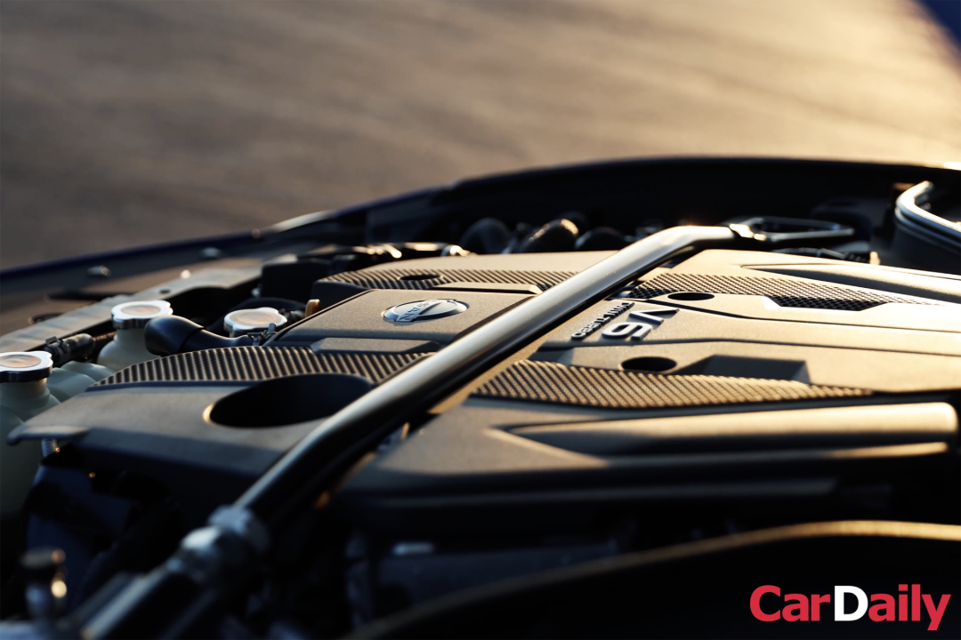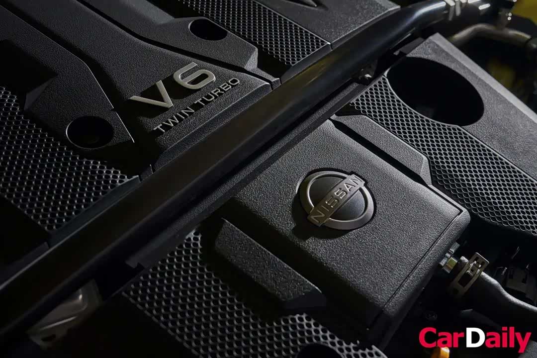 新发动机配备了两台小直径涡轮增压器,它们的功用之一是减轻涡轮迟滞现象,另外还有电子可变气门正时(e-VVT)进气系统来帮助改善油门响应和燃油效率。这台型号为VR30DDTT、排量2997毫升的发动机基本上与英菲尼迪Q50/Q60使用的动力单元是同一个东西。