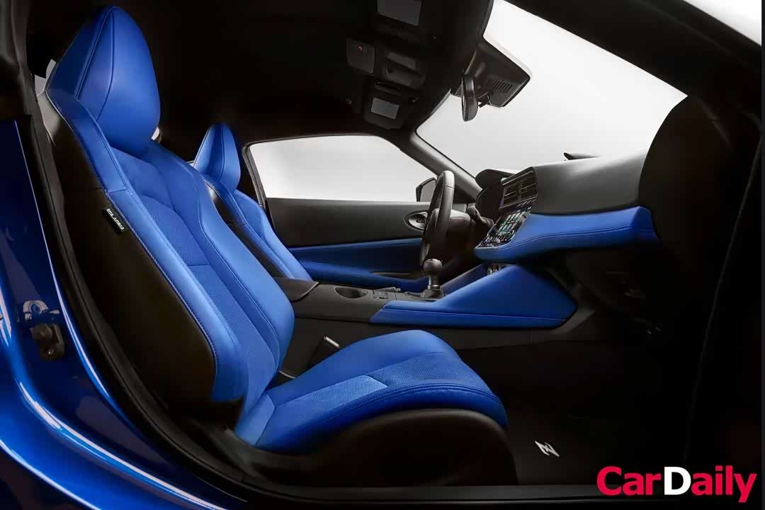 日产的目标是营造出“复古美学”,具体手段包括盘芯深凹的方向盘和支撑性良好的运动型座椅椅背上的小山羊皮,这样的座椅有助于让驾驶者在充分挖掘转向g值的同时保持坐姿——日产说新Z的转向g值比370Z高了13%。