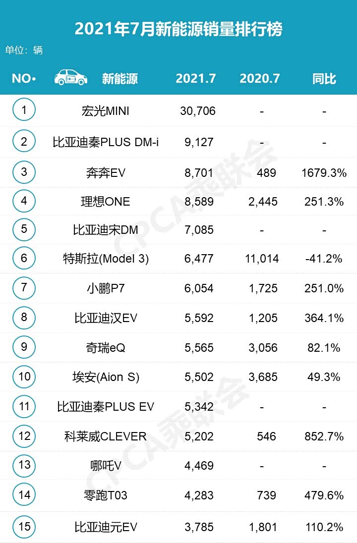 五菱的宏光MINIEV可以说是家喻户晓了,便宜的价格、好看的设计和强大的品牌影响力,使其得到了广大消费者的认可和喜爱。7月凭借销量30706台连续11个月稳居中国新能源市场销冠,且1月、4月登顶全球新能源销量第一。