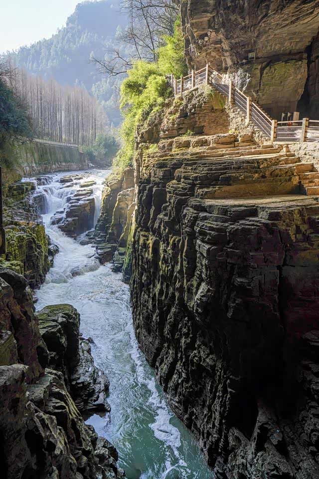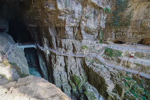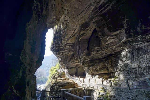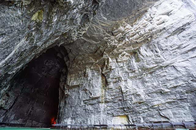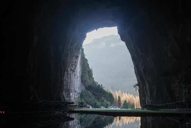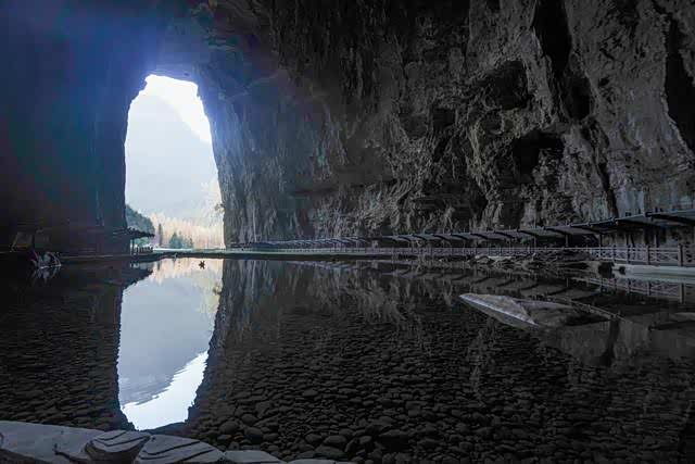 在巨大的山洞旁边就是河床。以前山洞就是这一条清江水穿越而过形成的,所以也是非常让人惊讶。