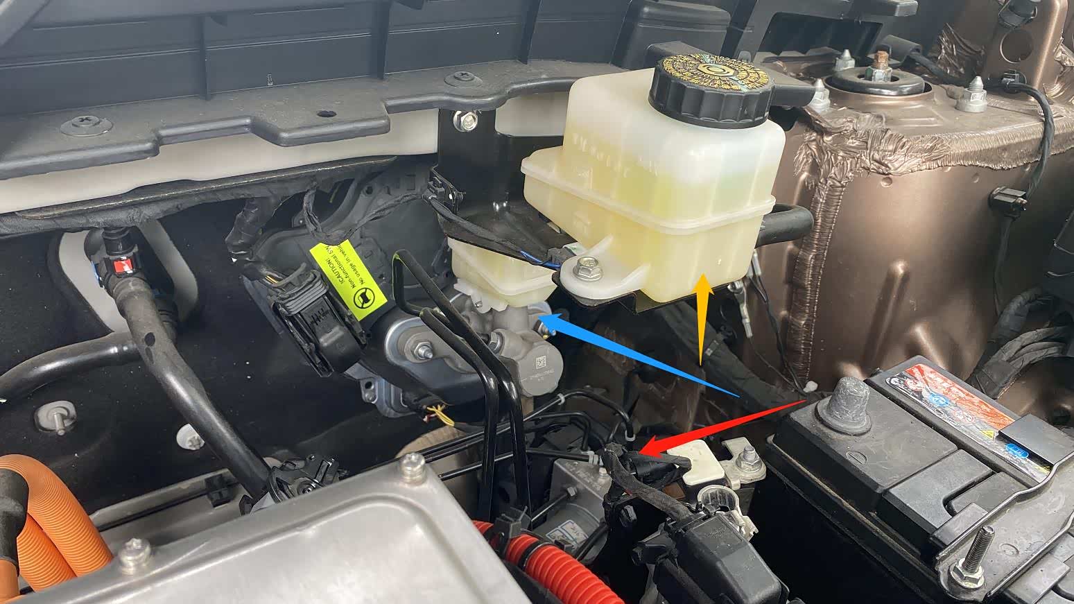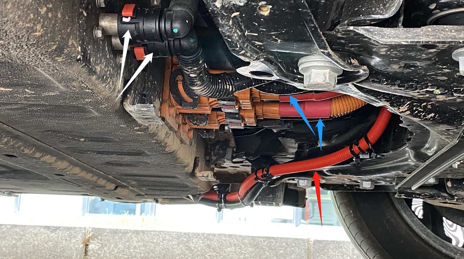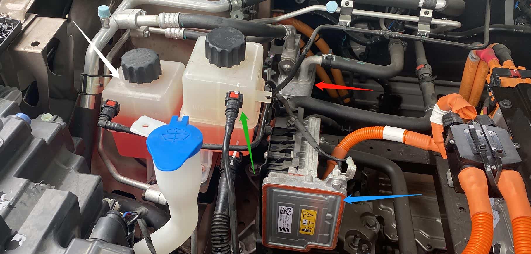 白色箭头:疑似动力电池热管理控制系统补液壶