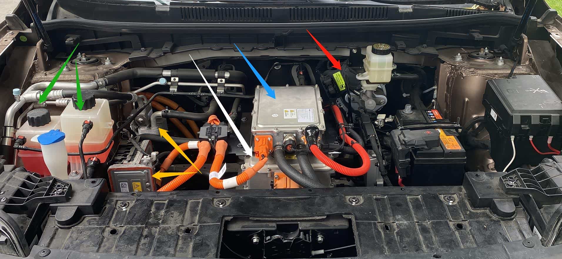 上图为威马W6前部动力舱诸多分系统技术状态细节特写。