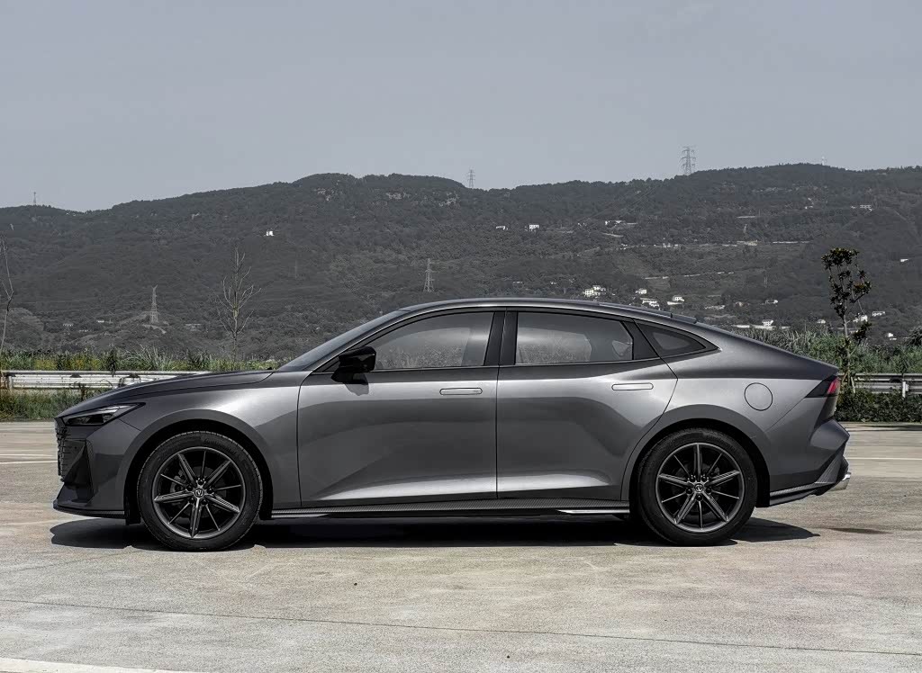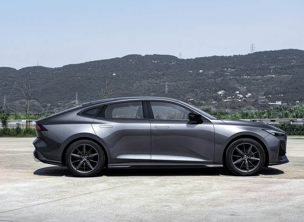 相比于前脸夸张的设计,车身侧面的线条和轮廓极大的满足年轻消费者的胃口,采用了当下最流行的轿跑式车身风格,同时新车还配备了18英寸轮毂,进一步压低车身姿态,呈现更运动的视觉效果,不得不说与奥迪A7和保时捷Panamera有几分相似。值得一提的是,新车还配备了隐藏式门把手,不仅看起来更高级,一定程度下还降低了该车的风阻系数,达到省油的目的。