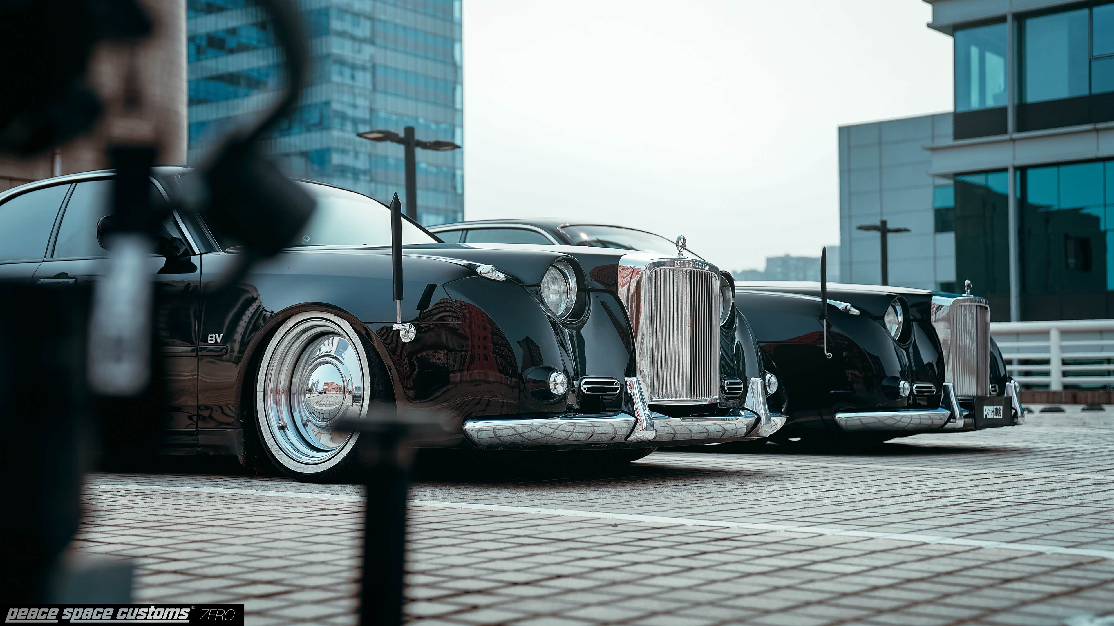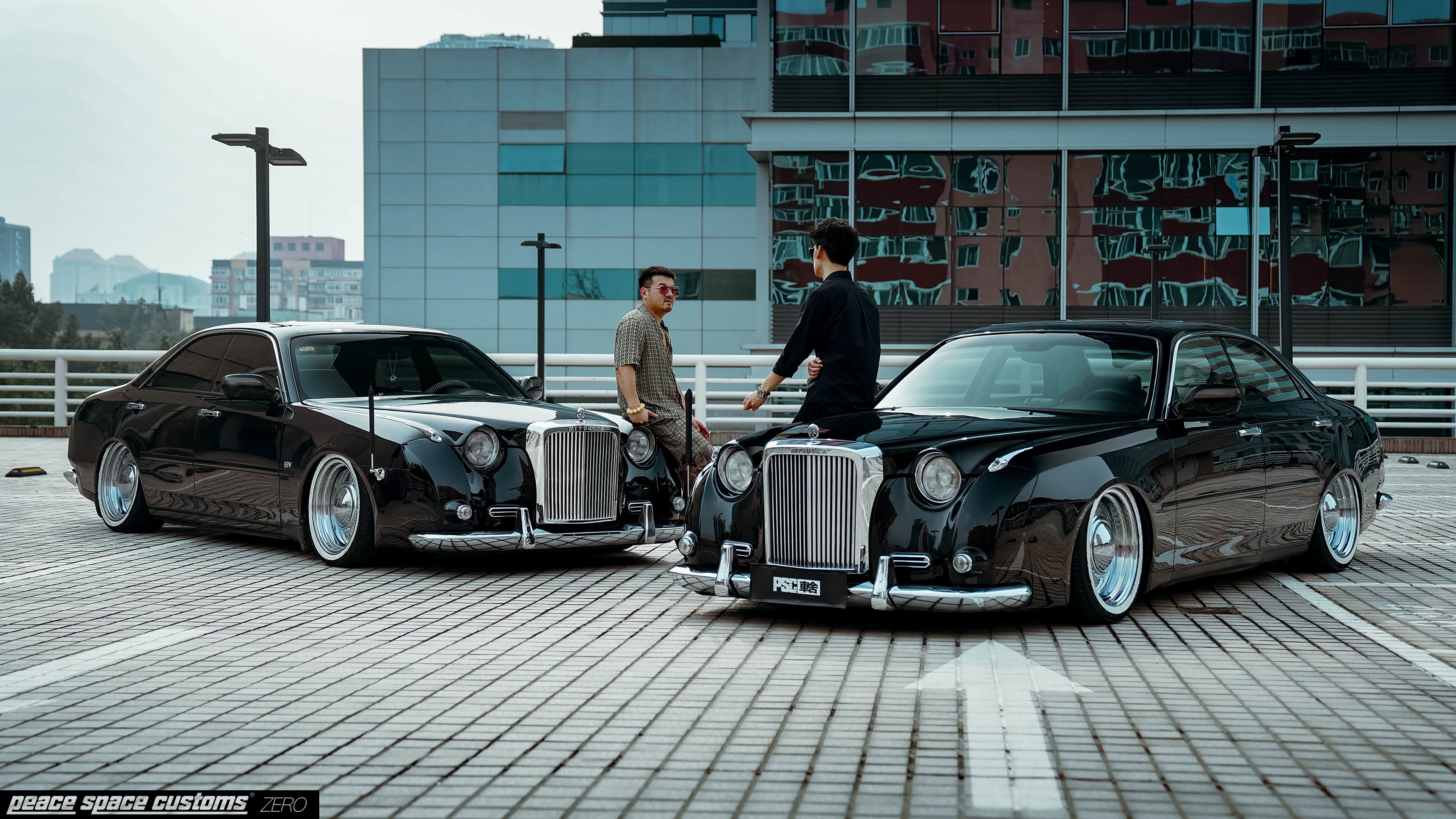 你一定在疑惑为什么这二位的改装会一模一样?确实,你的眼睛没有欺骗你,在这场“找不同”的游戏里除了后翼子板外我真的找不到第二处了。我们在去年的图文中已经介绍过其中一台嘉路,而另一台的改装与它如出一辙,这是因为两台作品都是出自我们第一位光冈玩家“缘儿爷”之手。在他的认知里,光冈的复古设计实在过于强烈,以至任何现代化的改造都与它产生排异反应,或许只有这样的复古实心电镀轮毂搭配白边胎和气动避震,才是最能保留原车特色并进一步加深其“老爷车”味道的方式。