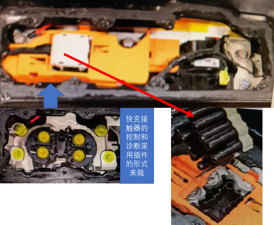 这个Panel下面,最主要是四个接触器,包括快充的双胞胎接触器和主正和主负接触器。