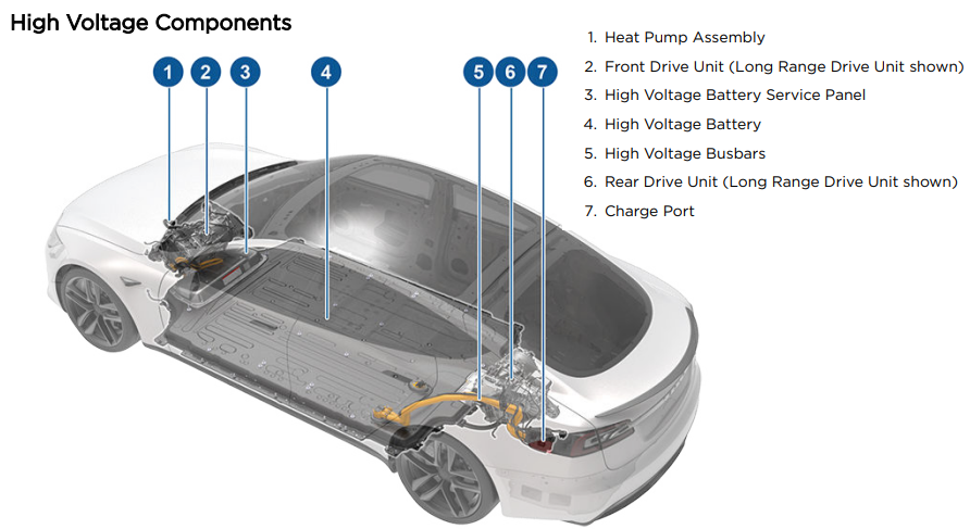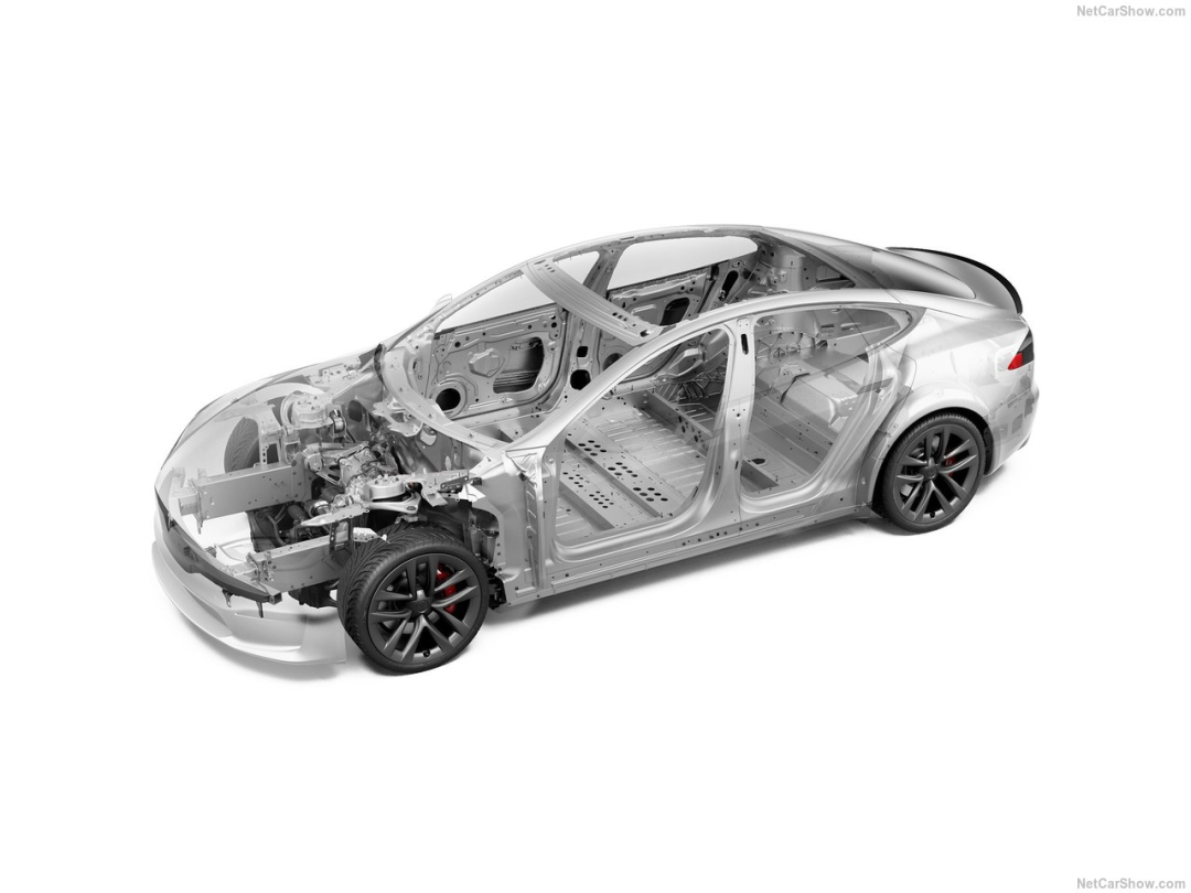 下面这个是一个双电机版本,实际上Model S plaid 还有一种前1后2的驱动配置。