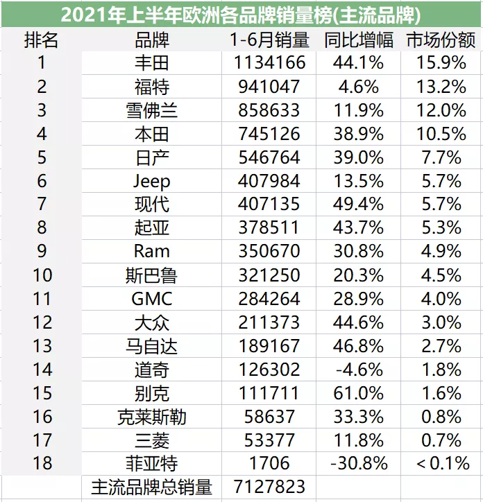 至于大众、菲亚特这样的欧洲品牌,在美国主流市场中的份额就非常边缘化了。
