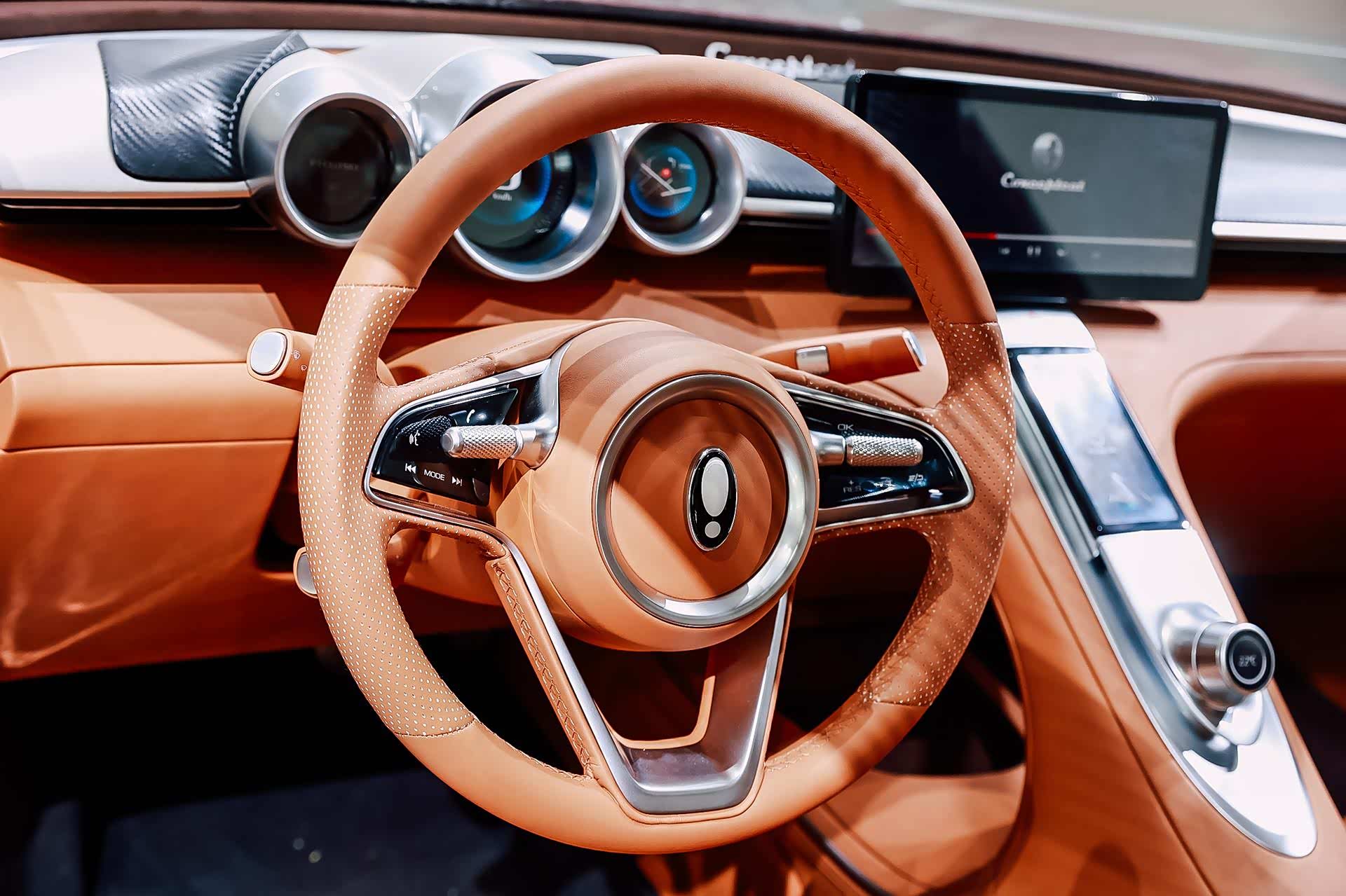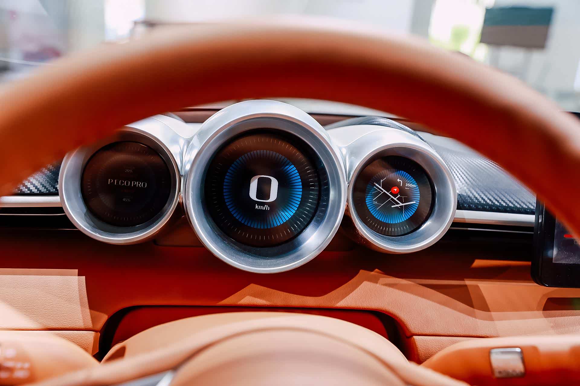 三辐式的多功能方向盘造型十分复古,两个滚轮的设计十分巧妙。有意思的是,新车未使用纯电车常用的大尺寸全液晶仪表,三炮筒造型的仪表在保证各项数据显示完全的状态下,确实更有设计感,更吸引眼球。