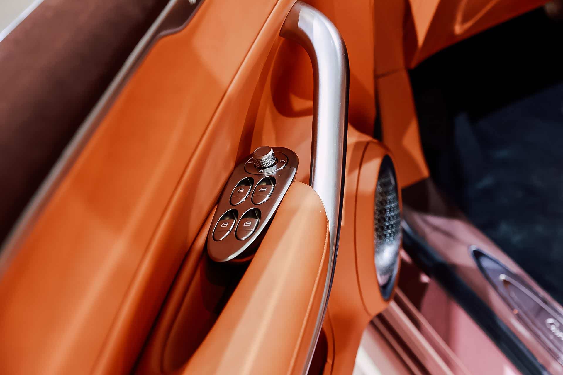 定位时尚大号轿跑的闪电猫,使用了无框车门设计,门板内部由真皮材质包裹,车窗按键金属质感十足不错。