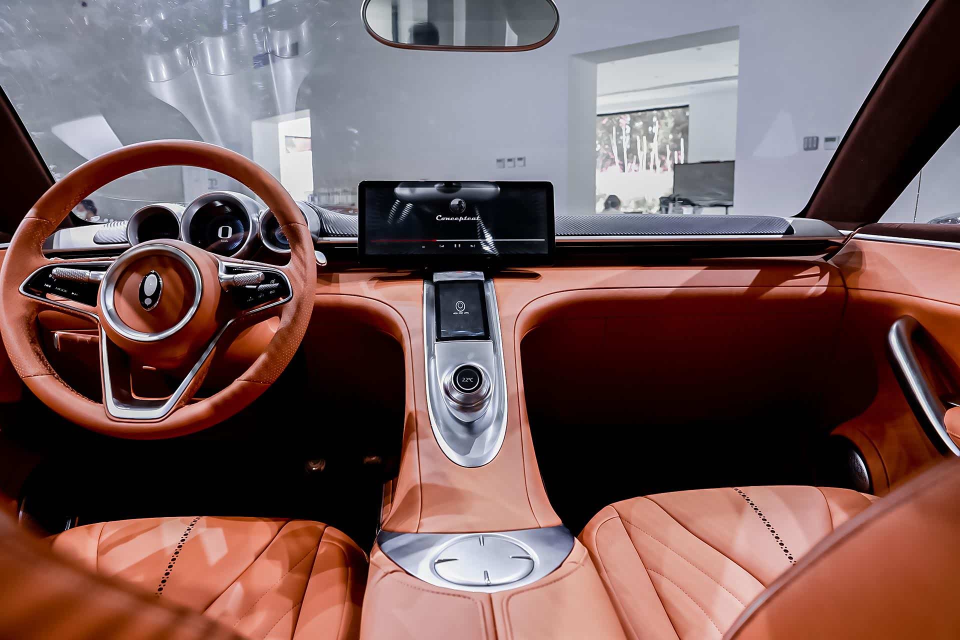 轮圈的造型看起来很有设计感,不知道未来的量产车上是否还留有这些个性轮圈。同时,环绕车身底部的镀铬装饰条、侧窗框的镀铬装饰、大灯组的镀铬装饰恰到好处,增加了整车的精致感。