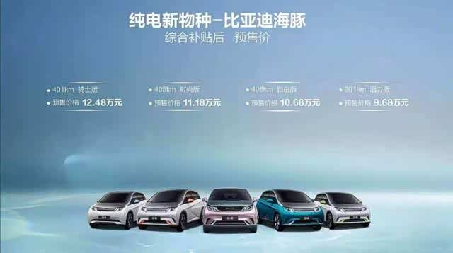 前不久,比亚迪公布了海洋系列首款量产车型-海豚的预售价(补贴后):9.68-12.48万元,以及续航里程:301-405km。这样的价格和定位,与合资品牌紧凑级燃油轿车相当,但是和五菱宏光MINI EV比的话,明显要高不少,所以也有一部分网友觉得海豚卖贵了!不过有趣的是,在预售上线的一小时内,海豚的订单就突破了2000辆。