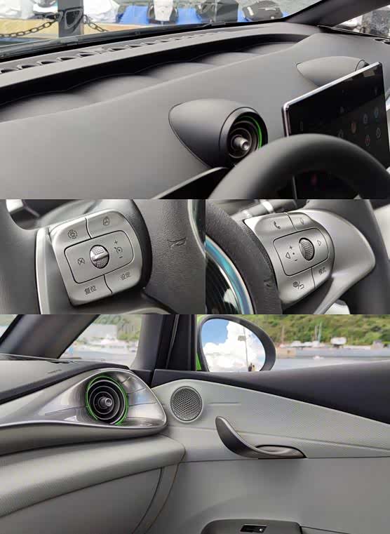 每种元素似乎都不同,但整合起来却很和谐,比如中控台上方饰板的波浪设计、海豚胸鳍状内拉手、带海浪的圆形出风口等,颇有海纳百川的味道。