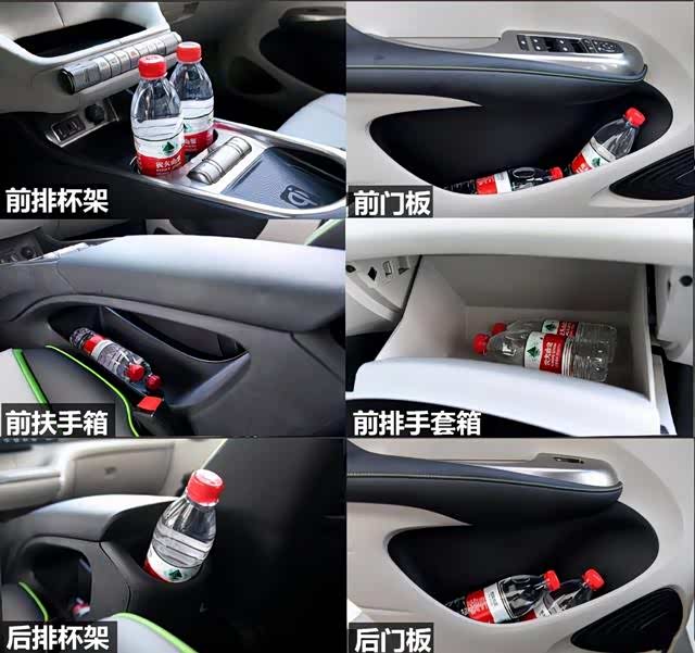 不过美中不足的是,储物的细节部分,海豚处理得并没有想象中好,比如前排中央扶手箱水杯格都放水之后,会影响到前面储物格物品的取放(水瓶靠近档把区,存在干涉)。