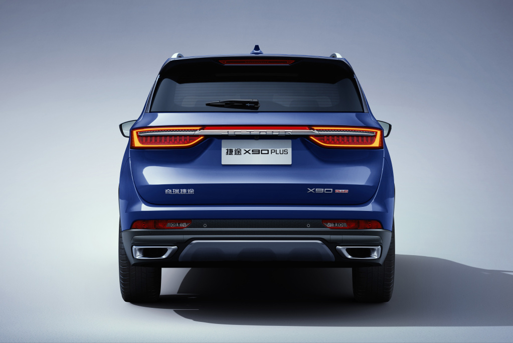 侧面,基本没有变化,作为一辆中型SUV,很明显能够感受到这台车的体积很大,再搭配这双20英寸的大脚,在效果上不错。与之相比的捷途X90车型在轴距上保持不变为2850mm,而在长度上有一定增加达到现在的4858mm。尾部是这台车的变化亮点,使用了贯穿式尾灯,突出PLUS车型的高级感。