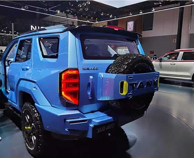 新车的侧面线条,依然非常硬核,车身的一些线条也是很有力量感,值得一提的是,坦克400的前后包围,更像是改装版,新车还配备了全地形越野轮胎,新车的侧面线条,跟丰田4runner高度相似,之前发布的坦克500也是跟酷路泽比较相似