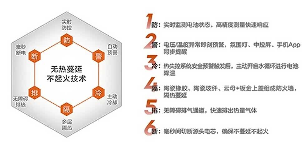 解决了能量密度这件事情,接下来就是将更多精力投入到如何确保电池安全上。极氪001的电池安全理念是通过“隔”、“排”、“防”、“警”、“冷”、“断”六大安全防护实现无热蔓延不起火技术。具体说来,就是多层隔热、无障碍排热、实施防控、自动预警、主动冷却、毫秒断电,保障电池的高可靠性、高安全性。
