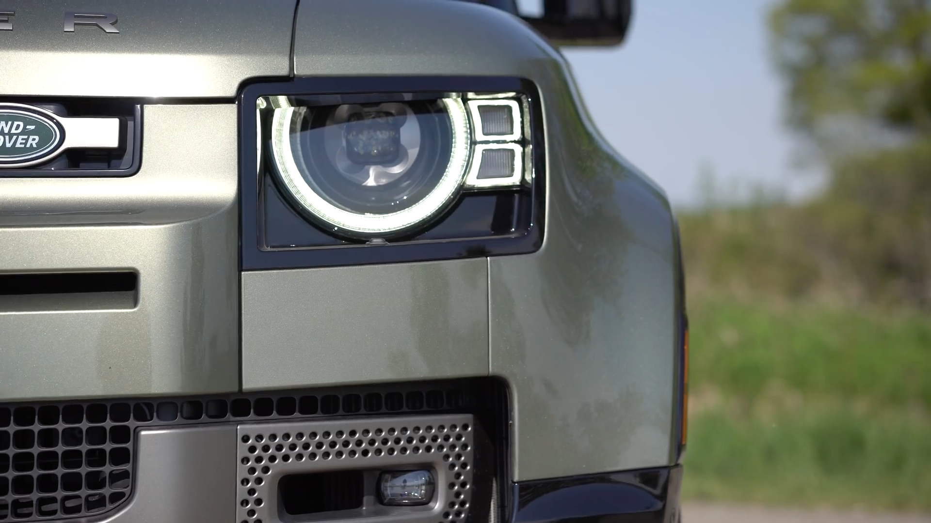 规整的矩形前进气格栅造型简洁,路虎车标镶嵌在哑光饰条上,非常精致。下方的打孔护板延伸到两侧雾灯区,延展了车头的视觉宽度,而且充满力量感。棱角分明的矩形头灯是家族经典造型的延续,内部半圆式设计显得非常炯炯有神,先进的LED大灯系统,集成自动调节大灯等功能,整个头灯组是内凹于保险杠的,这样的设计无疑会提高在越野情况下,对大灯的保护。