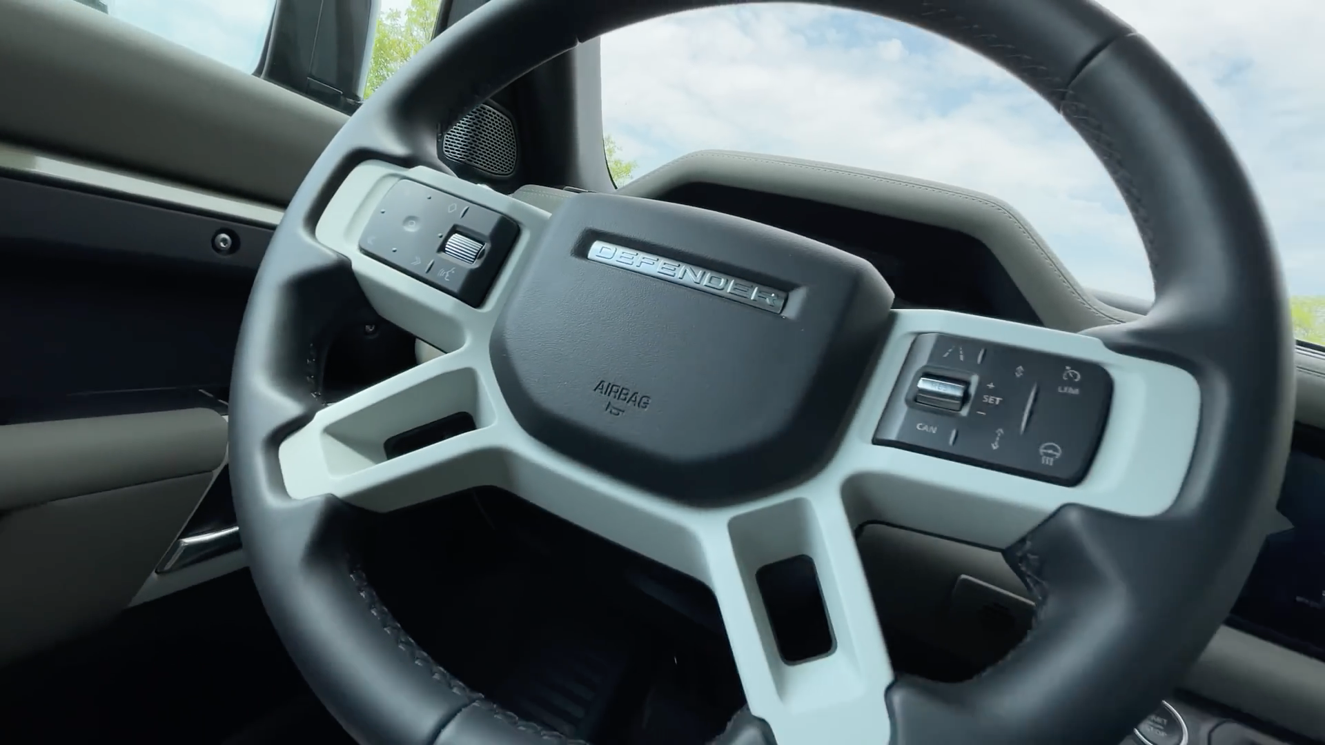 路虎卫士90 X-DYNAMIC S的内饰可选多种配色方案,采用前卫的简约混搭风格,在保持卫士硬朗越野风格的基础上,引入了更多科技元素,应用了更加高档材质,进一步提升了卫士90的科技和豪华感。四幅式方向盘,采用直接裸露的镁合金材质辐条,仅是喷涂了磨砂质感的漆,触感略有粗犷的颗粒感,中间的安全气囊则用细腻的皮质包裹,多功能按键表面使用纳米材质,使用触感和防污特性均非常出色。