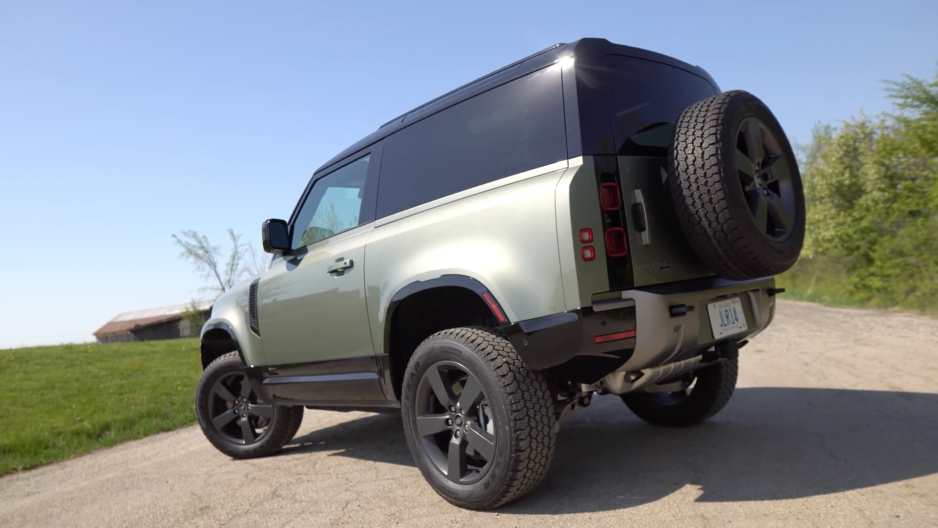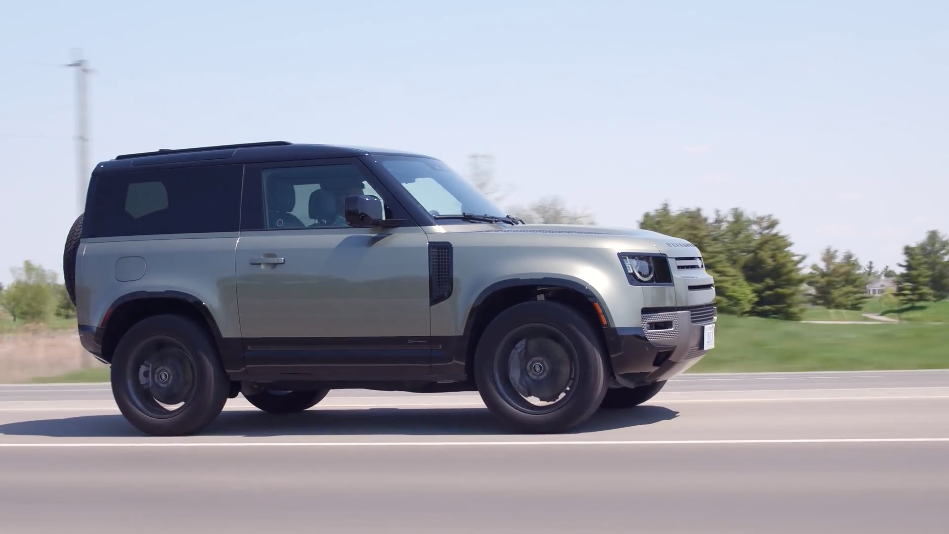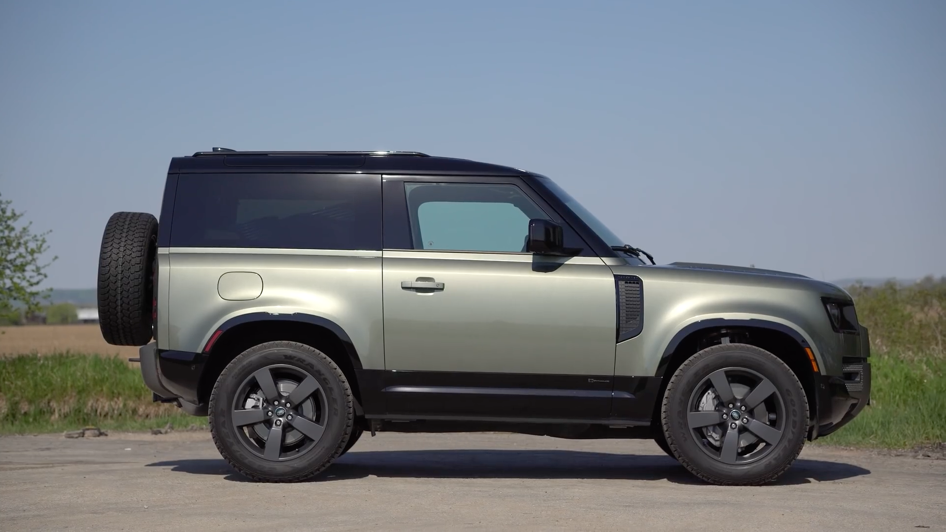 路虎卫士90车身造型和之前发布的路虎卫士110粗犷硬朗风格一致,但车身尺寸和轴距均有所减小,看起来车身更紧凑,盘古绿色车身,搭配深色后视镜、保险杠符合越野车的风格,车身包含备胎的尺寸:4583/2008/1969mm,轴距2586mm,最小离地间隙216mm。