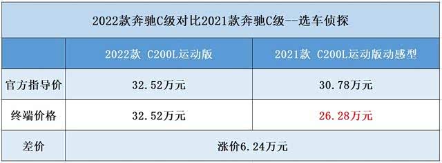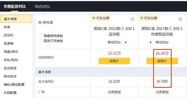 从两个网站的终端经销商价格来看,老款C级有4.5万以上的价格下沉空间,而新一代并没有,虽然官方指导价只差1.8万,但其实两车的终端差价达到6.2万左右。