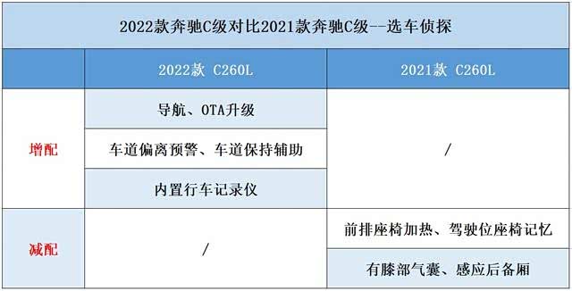 用户最关注车型配置变化—2022款C260L/2021款C260L