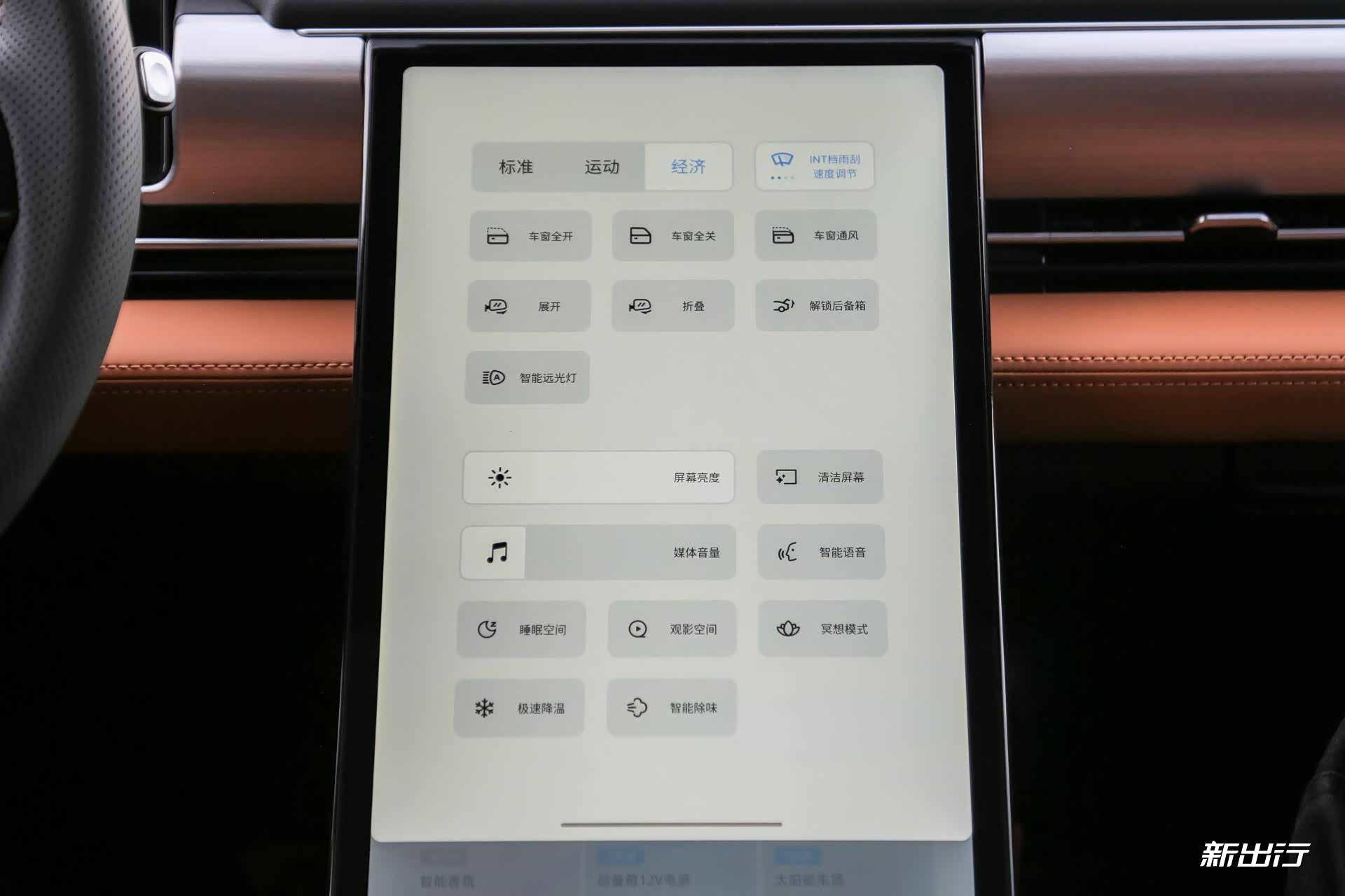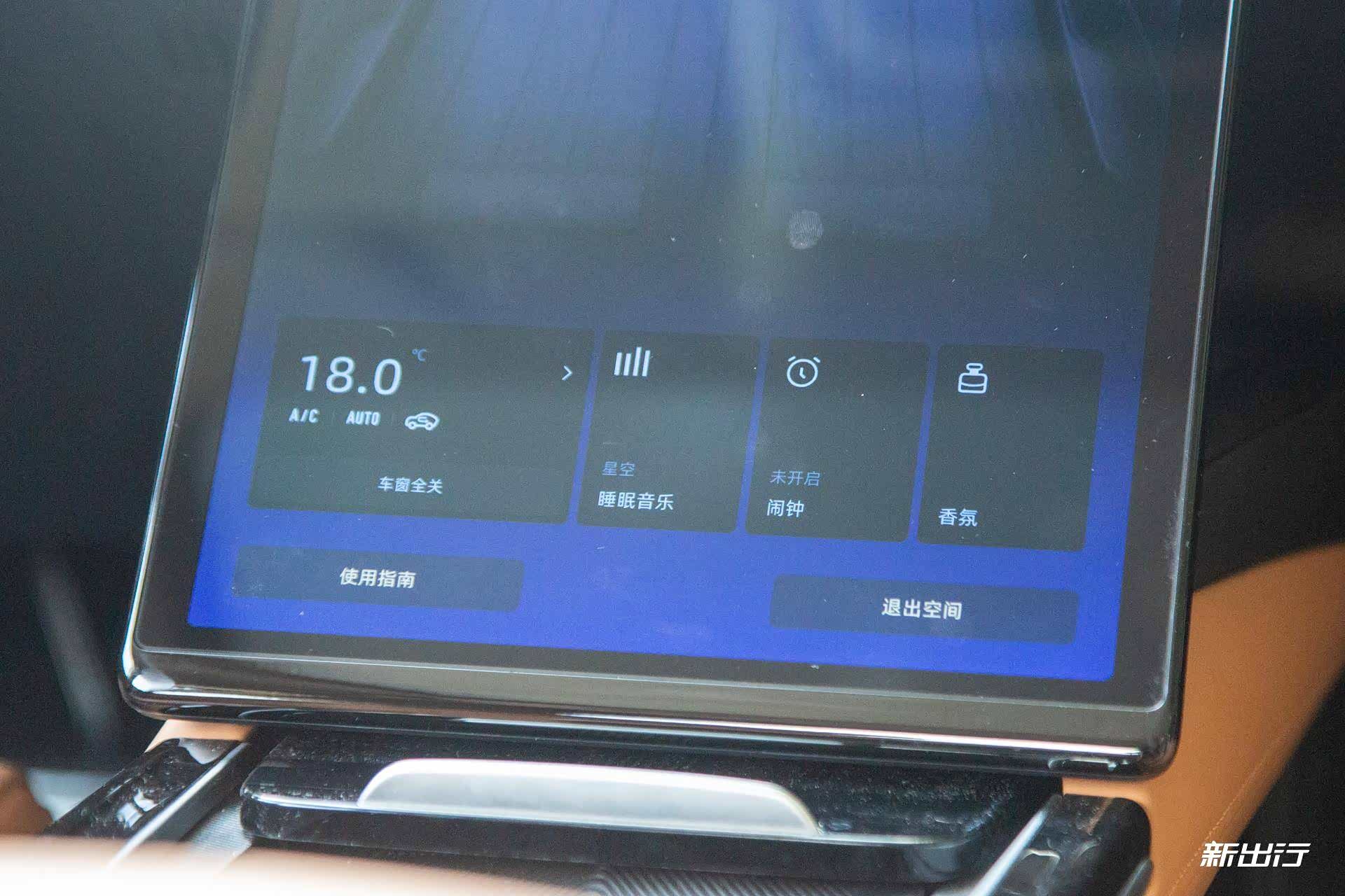 在进入睡眠模式后,可以在中控屏处进行一些功能的调节。