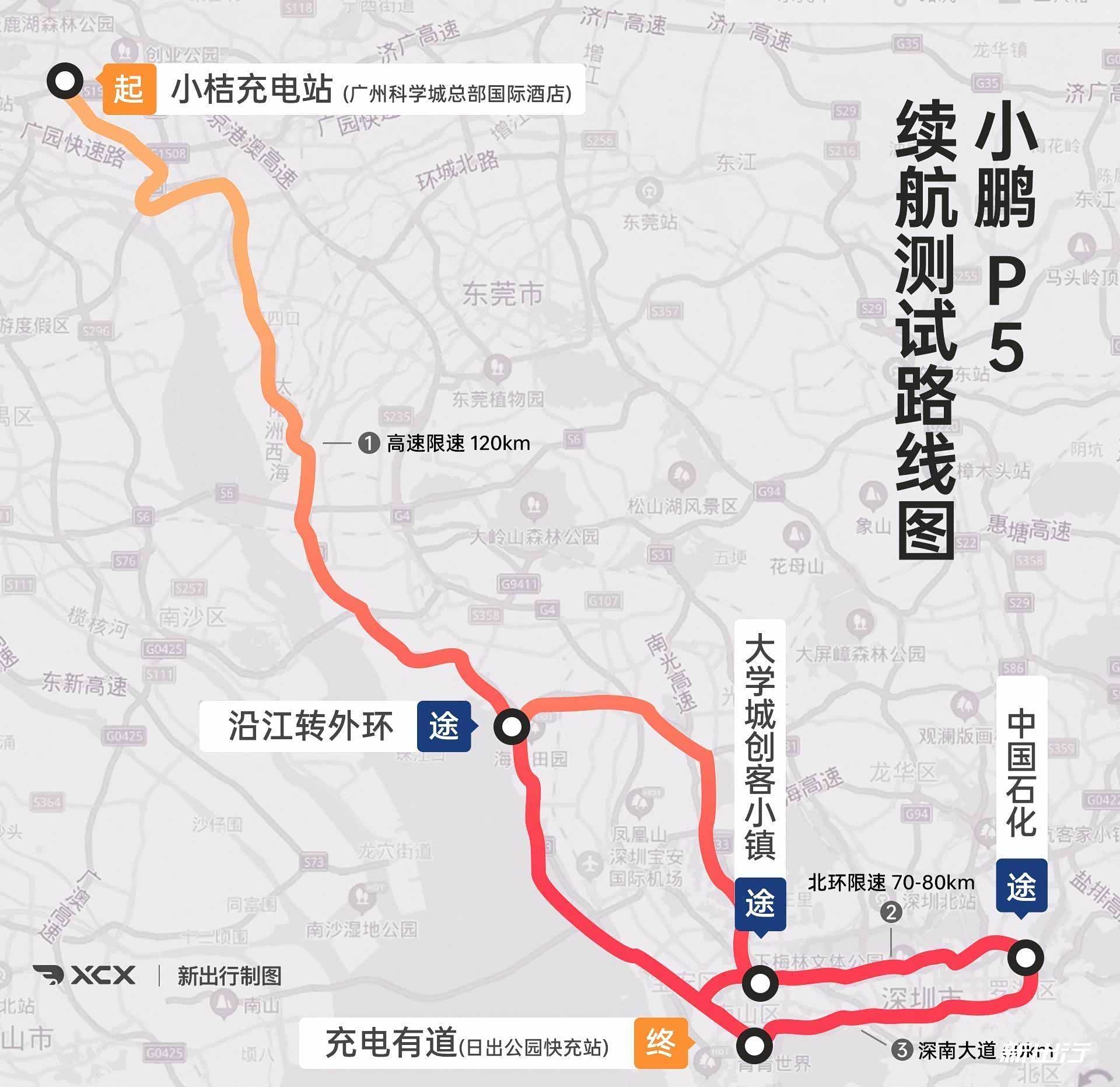 拿到 P5 实车后,续航测试是一定要做的,这一次同样按照 XCX-TEST 标准进行续航测试。本次测试的路线我们分为两天进行,其中 30% 的电量在高速路段行驶,70% 的电量将在城市道路上进行。