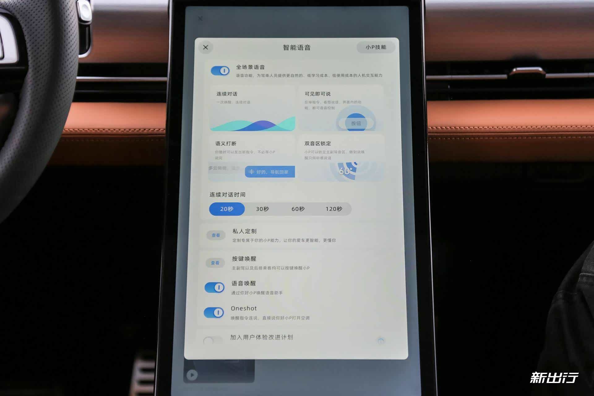 接下来我们来看看语音系统的能力,Xmart OS 3.0 系统的全场景语音功能一直是小鹏拿手的领域,拥有全场景语音功能的车辆除了小鹏以外,还有刚刚更新 3.0 系统的蔚来车型。语音系统的唤醒词语仍然为“你好,小 P”,当然也可以通过按键进行唤醒。在 P5 上,语音系统其实和目前 P7 上的是一样的,至少在功能上都是一致的。