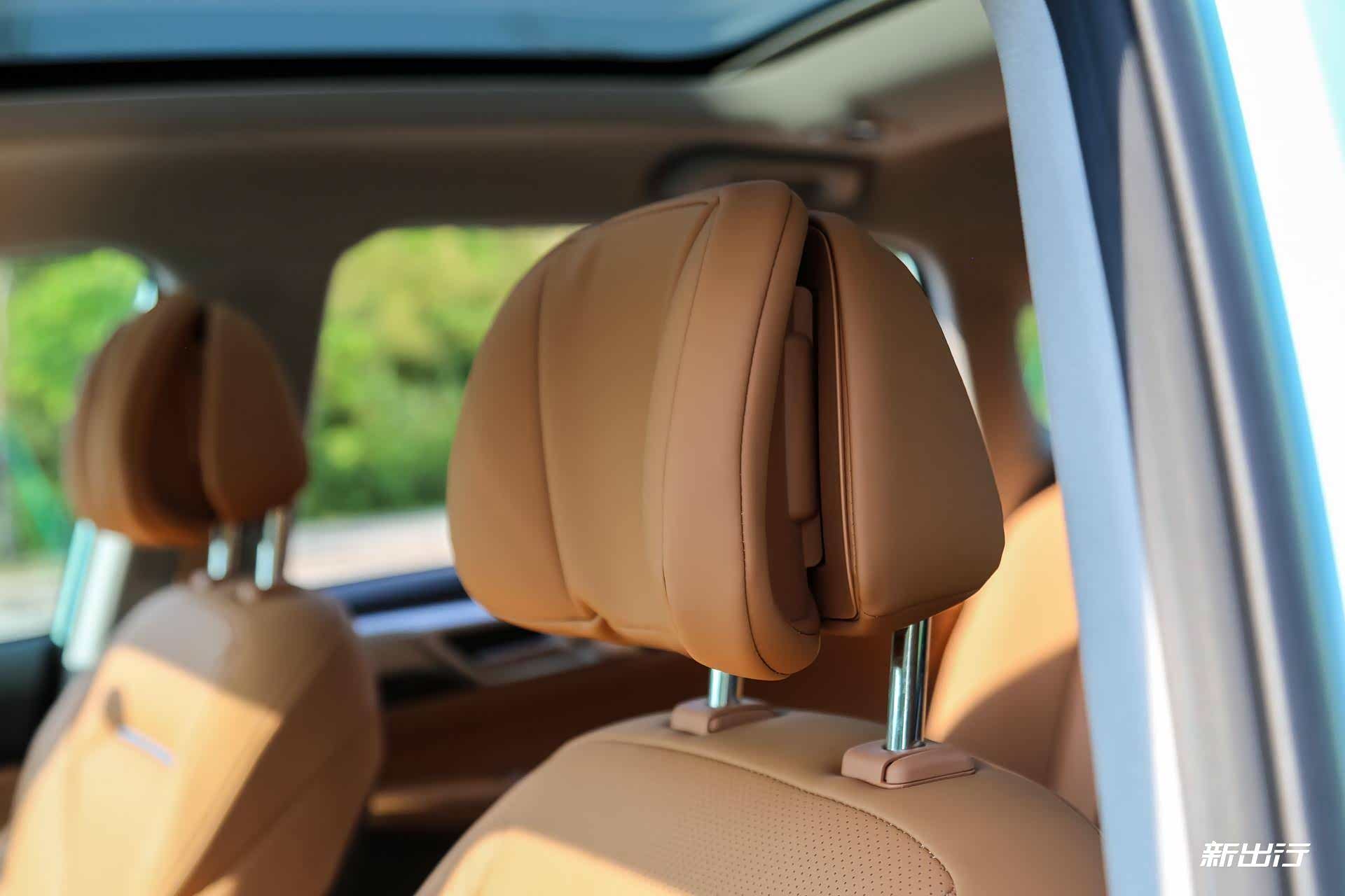 这里和大家说一个有意思的点,前排头枕的两侧实际上是可以调节,对头部起到更好的支撑作用。这在同级别里非常难得,甚至在 30 万元以下的新能源车型里,头枕两侧能够调节除了 P5 以外应该就只有汉 EV了。