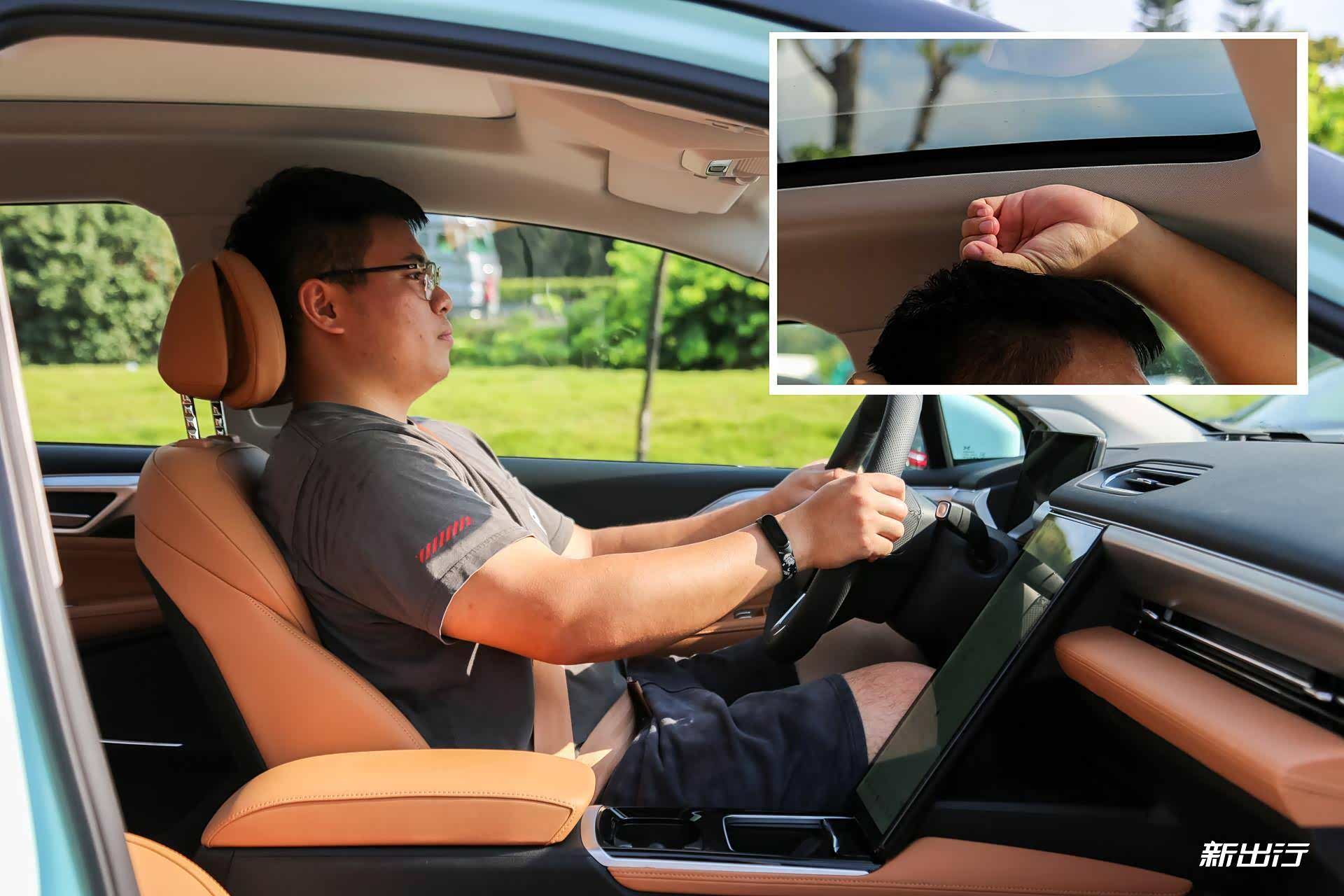 如果将遮阳帘打开后,头部空间大概还有一拳四指的距离。