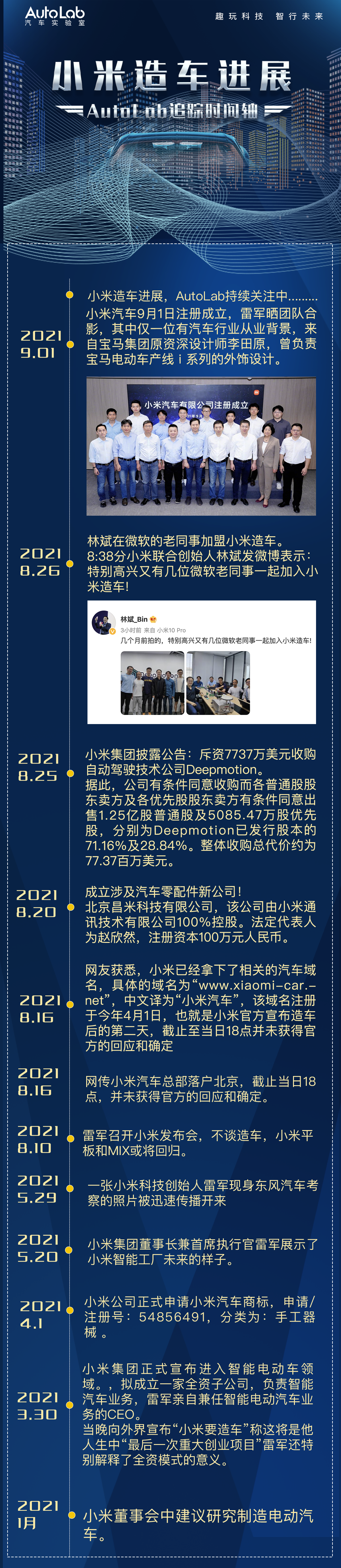 那么到小米造车的情况到底是怎样呢?小米是否真的能造出来车?不妨跟着AutoLab哔哔熊的脚步来整体了解一下,小米造车到底都有怎样的进度。