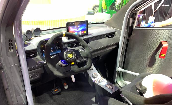 内饰层面,新车融入了OMP赛事定制方向盘,模拟赛车驾驶手感,设计上还是非常能够吸睛的,并且材质用料也是比较的有新意,摸上去质感相当的好。此外,后排拆除了座椅,改造成一个个人展示空间,给人感觉相当的宽敞。