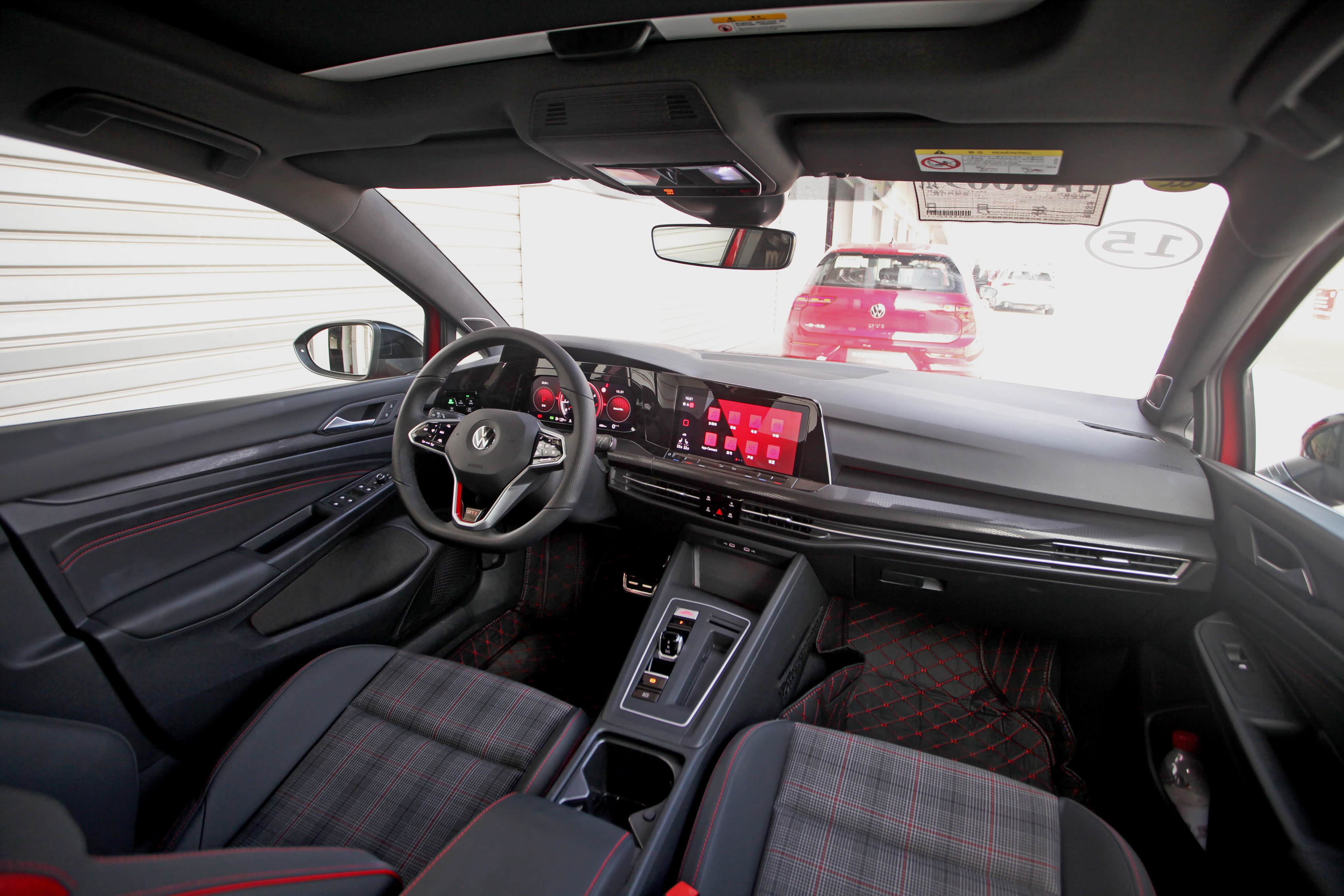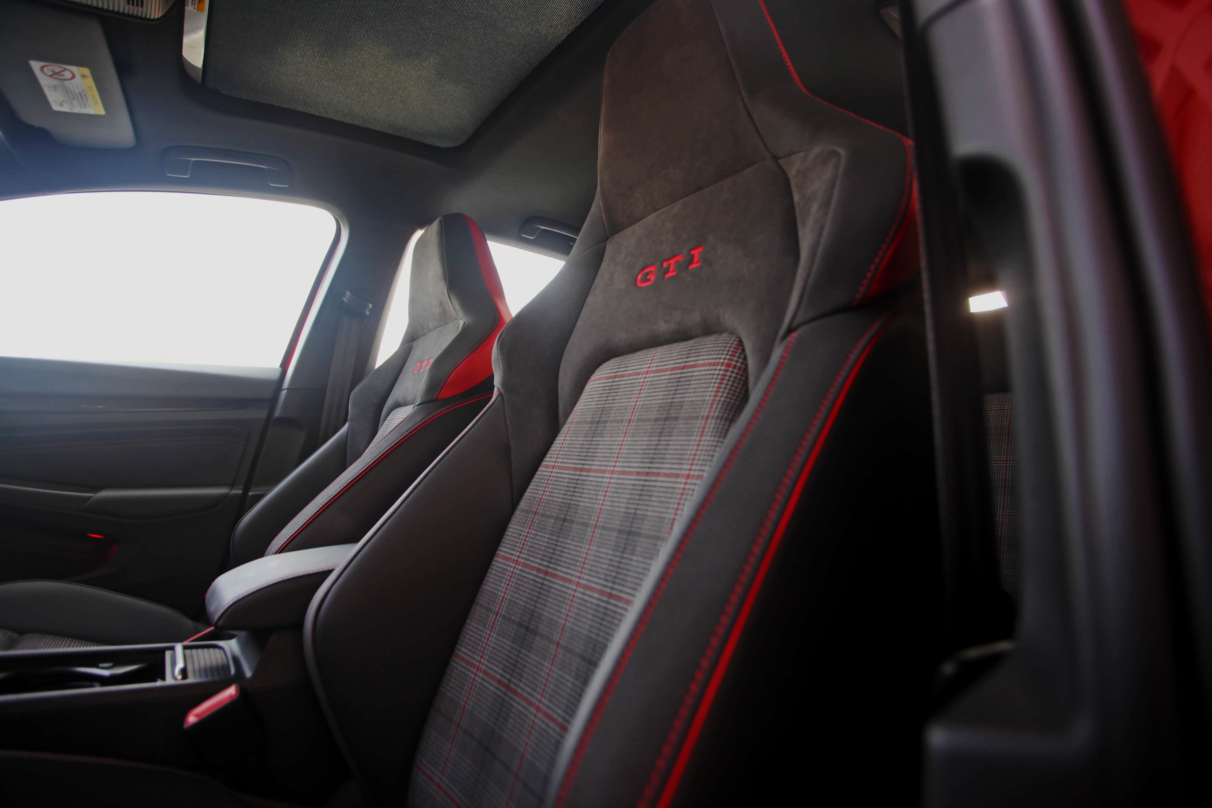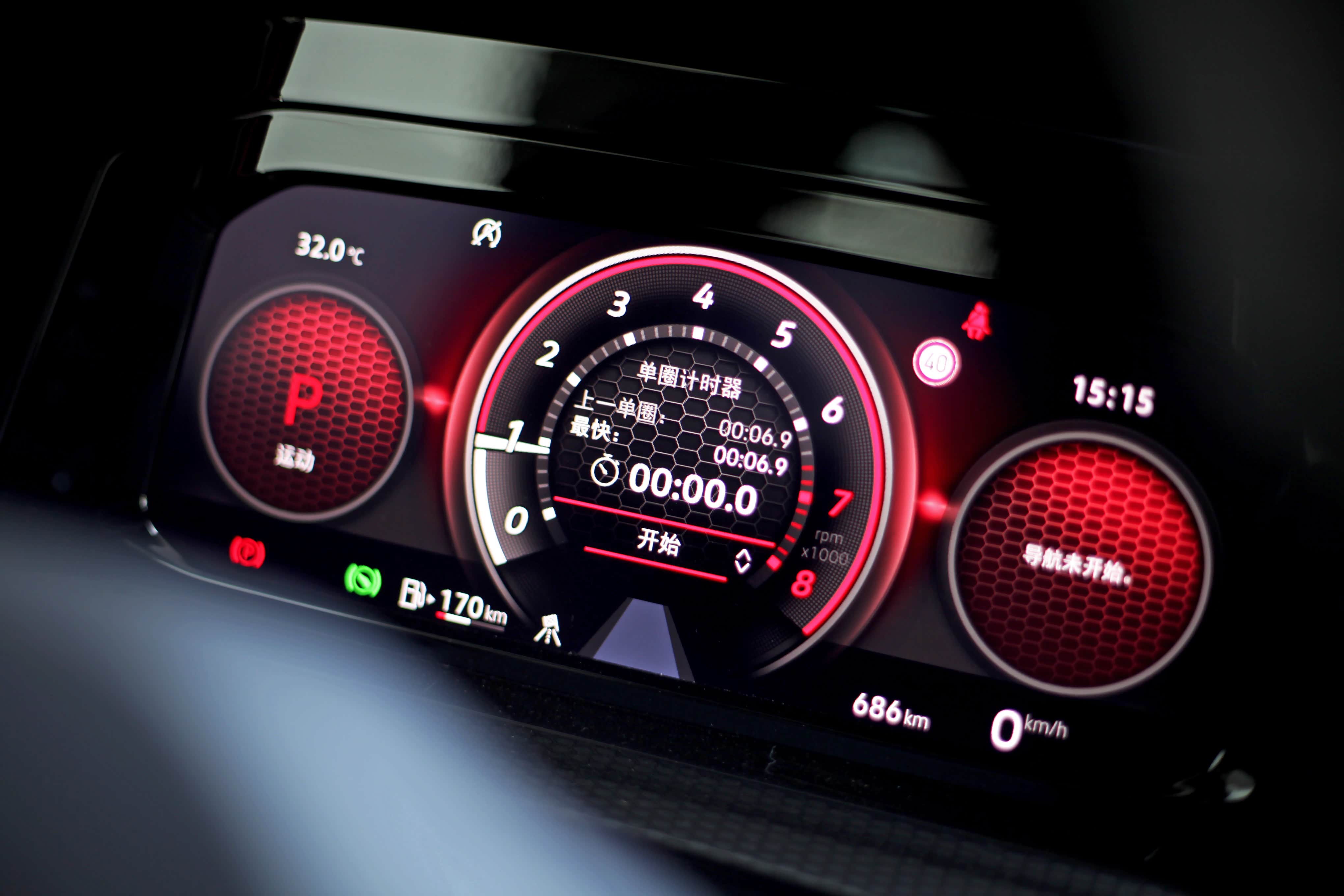 进入车内,方向盘的红线和GTI标识,GTI仪表盘以及格子布座椅,应该都是最提神的元素了。全新的内饰也让GTI车型登顶高尔夫家族满配的位置,两块屏幕充分地展示了“数字化”的用意,拥有不同的主题并可跟随氛围灯变换配色,不过突出GTI标识的转速表主题,一定是使用率最高的选择了。