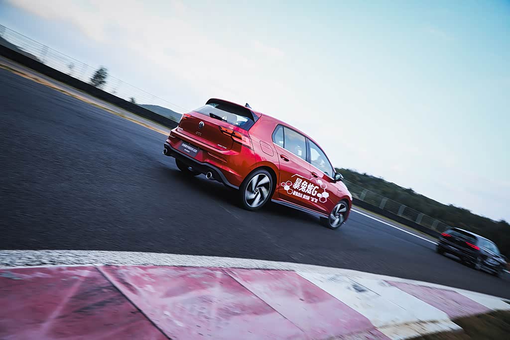 在小赛道中,应对蝴蝶桩、蛇形状和S形绕桩的项目中,第八代GTI车身非常灵敏,车尾的跟随性很高,重心变换干脆,车头的指向和手上操作同步性不错。渐进式的转向系统随着转向角度增大而愈发紧致。但对于这样一台小巧的钢炮来说,方向盘的直径如果再小一点的话,通过快速多变的弯道可能会更加顺手和自如。