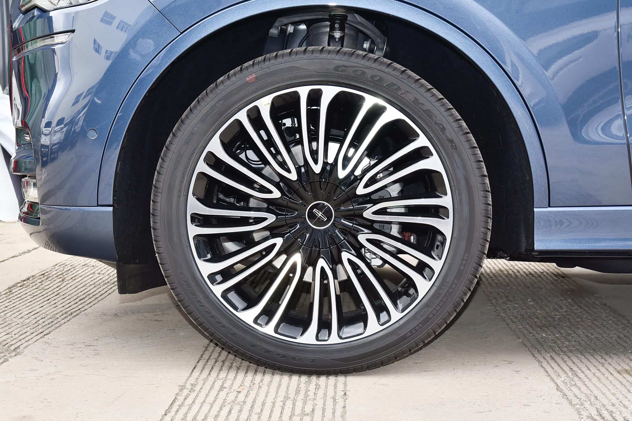 22英寸轮毂采用了“飞行器涡轮”造型,非常别致,和整车流畅的外形相得益彰。匹配的轮胎是固特异EAGLE TOURING,规格为275/40 R22。
